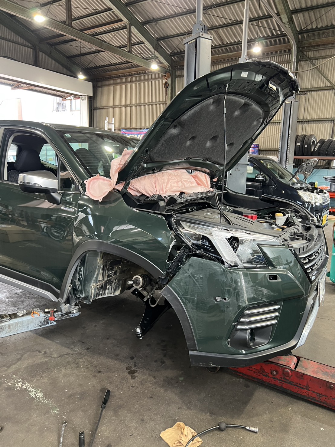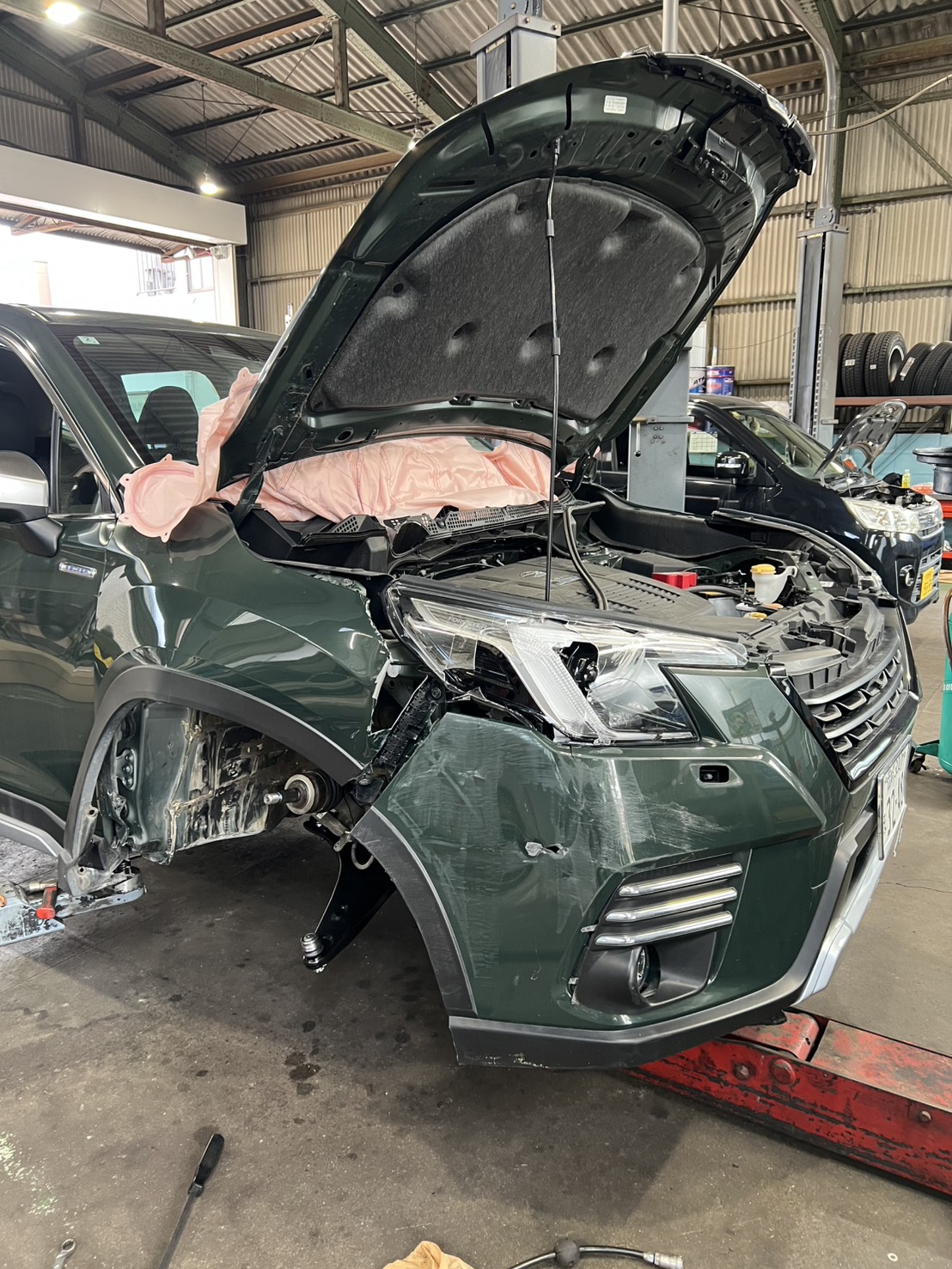 今回はフロント部分を大きく損傷されたケースで、エアバッグも作動してしまうほどの衝撃でした。